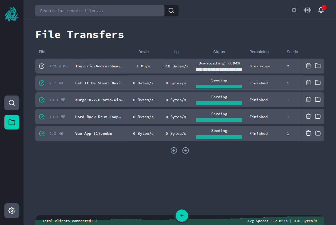 Surge est une application de partage de fichiers p2p conçue pour utiliser les technologies blockchain afin d'activer les transferts de fichiers 100 % anonymes. Surge est chiffré de bout en bout, décentralisé et open source.